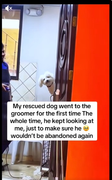 They say a picture is worth a thousand words — and in the case of this tiny white rescue pup, one glance at that trembling neck crane around a doorway tells the heartbreaking story louder than any headline ever could.