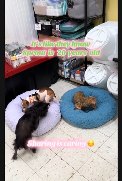 The stars of this viral TikTok are three senior rescue dogs: Amelia, a 12-year-old black pooch; Tamale, an 8-year-old Chihuahua; and Sprout, a remarkable 20-year-old Dachshund.