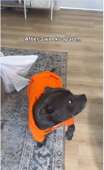 That’s exactly what happened when a Staffordshire Bull Terrier named Tommy was reunited with his baby sister after three long weeks apart.