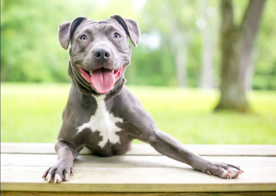 Imagine walking into a quiet room filled with grief, only to be met by a gentle, gray-faced Pit Bull with eyes that seem to say, I understand.