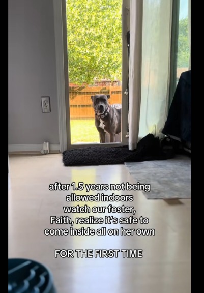For 1.5 years, the only place she knew was outdoors—weather, fear, the ground beneath her paws. Inside was different.
