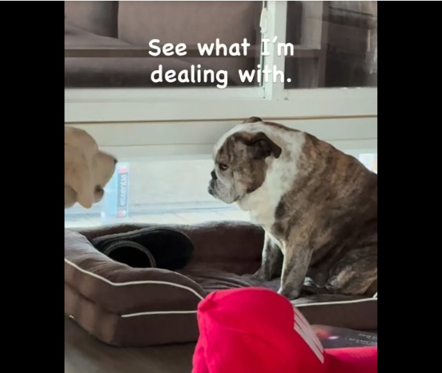 The resident dog’s response? A stare so flat and expressionless that viewers instantly related. No growl. No bark. No dramatic retreat.