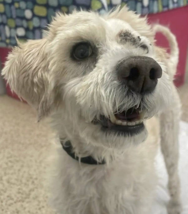 When animal lovers finally shaved away all that matted fur, what emerged wasn’t just a different look — it was a whole new beginning. As the layers of hair, dirt, and years of neglect were removed, her true face — expressive, gentle, and unmistakably hers — was revealed for the very first time.