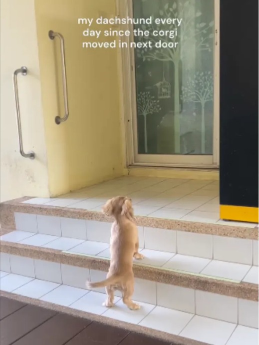 A video capturing this daily tradition — posted on Instagram with a caption that reads, “My dachshund every day since the corgi moved in next door,” — has resonated with millions of viewers.