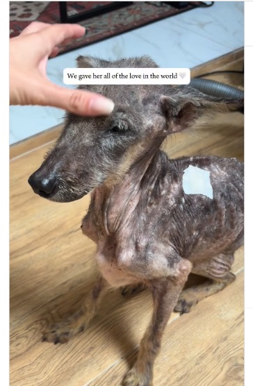 Sleeping curled into herself. Then therapy began. Food came. Vet visits. Tender grooming. Safe space.
