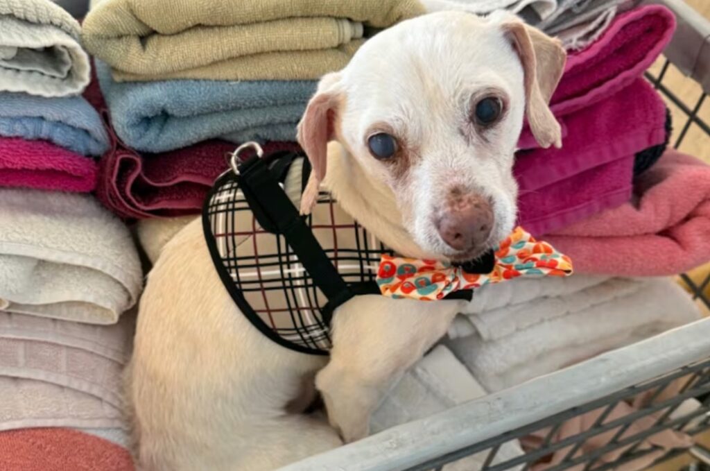 Belushi lives under the care of a dedicated foster mom, Lisa, associated with a senior dog rescue in San Francisco that focuses on giving older pups the care, dignity, and joyful experiences they deserve.