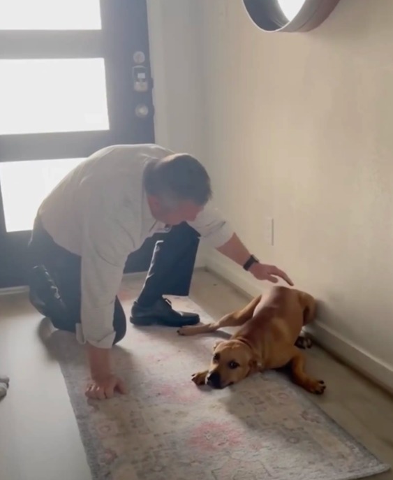 His hands were gentle. Patient. He crouched. He coaxed. With a leash, a soft voice, a promise in his tone. He didn’t rush.