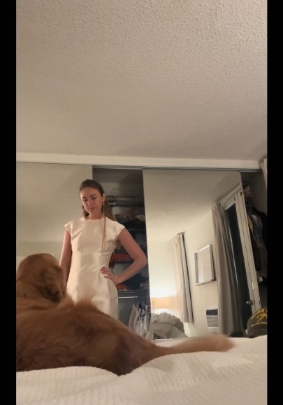 That’s exactly what happened with Cooper, a golden retriever whose latest mission was helping his owner pick the perfect outfit.