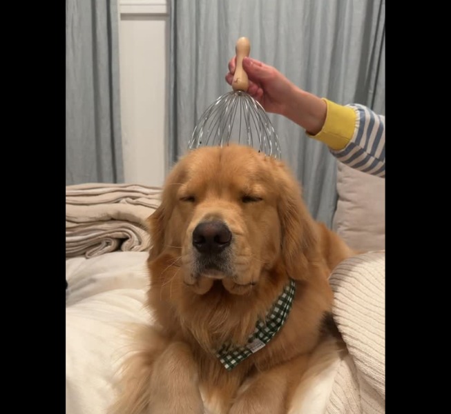 In a world full of noise and rush, this Golden Retriever’s head massage video is a reminder that joy can be found in simple, unguarded moments of comfort. It’s a brief pause, a collective exhale, and a gentle nudge toward appreciating the calm when it comes.