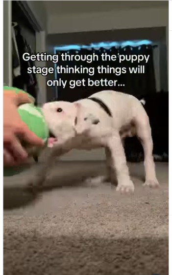 In the video that’s going viral, the owner starts to realize: this dog is not just a puppy anymore.
