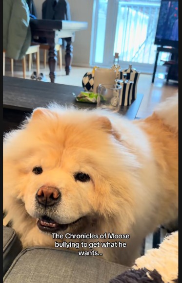 Forget the dog that waits patiently for your hand to drop the toy or the treat. Meet Moose, a cream-colored Chow whose mission is clear: playtime starts now—or else.