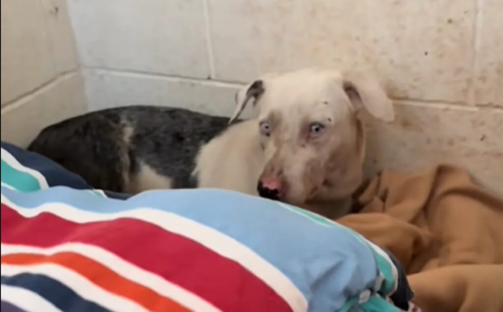 His eyes told part of the story: Toby is vision‑impaired, and he also struggles with hearing — a double burden for a dog dropped into a scary, unfamiliar place.