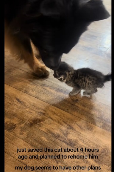 Picture this: a little kitten, new to the world and as vulnerable as can be, finds itself in a home with a German Shepherd mix.