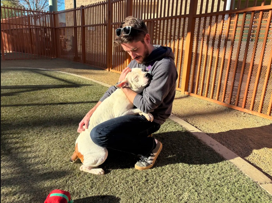 The shelter’s communications manager, Kelsey Pizzi, shared that in her years working with animals, she’d never seen a dog quite like Zar. Instead of being reserved or nervous around humans, Zar actively pursues affection, greeting everyone who walks into the yard with a tail wag and leaning in for a hug that lasts as long as visitors will let it.