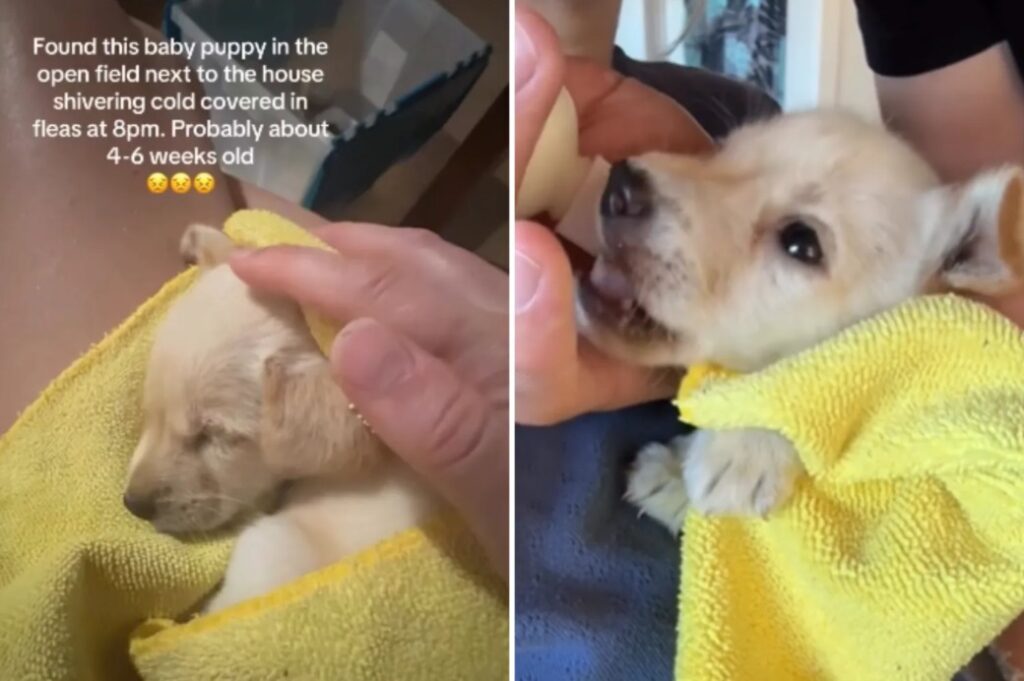 That night, the family made the puppy their priority. They hand-picked fleas from her fur, gave her a flea bath, and wrapped her in blankets to keep her warm through the long, cold hours. The work was tender but necessary — and a test of patience and love.