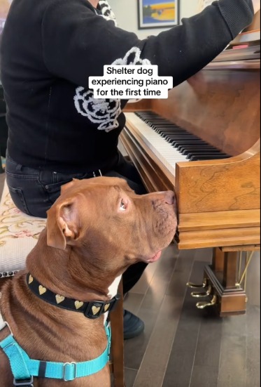 “First encounter with a piano went so good!” Jen wrote. “She was so interested and curious. This was the most confidently I’ve seen her behave in the nine days since she’s been out of the shelter!”