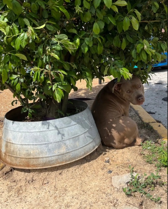 In a quiet neighborhood, nestled beneath the shade of a magnolia tree, a dog sits in a spot he’s known far too well — not out of playfulness, but because this is where his people left him.