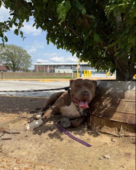 Whether due to moving, financial strain, or indifference, those people chose to leave him behind, securing his leash around the sturdy trunk of a magnolia tree and walking away. No knock on the door. No goodbye. Just silence — and a dog tethered to hope.
