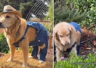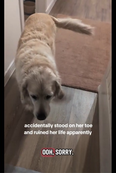 That’s exactly what happened with Lucie, a senior golden retriever who’s recently taken the internet by storm with her theatrical reaction… and honestly, if love were measured in foot stomps, she’d be MVP.