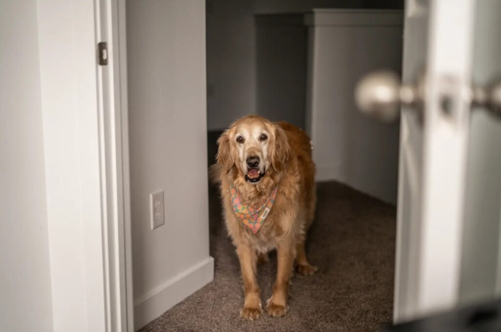 She doesn’t just stay put and try to forgive — she storms off (well, as stormy as an old golden retriever gets) to another room.