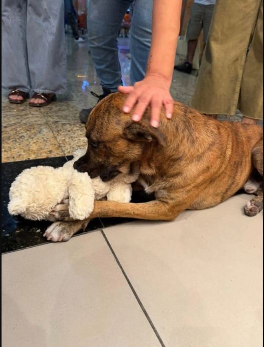 A stray dog wandered into a toy store, picked up a stuffed animal in his mouth, and tried to walk out — and that simple act set off a beautiful chain reaction among strangers who saw something special in his eyes and his determination.