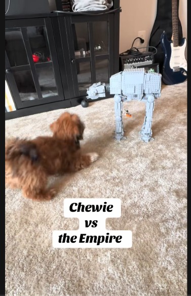 One recent clip shows Chewie facing down his biggest rival yet: a LEGO Star Wars AT‑AT Walker — ominously called “The Empire.”