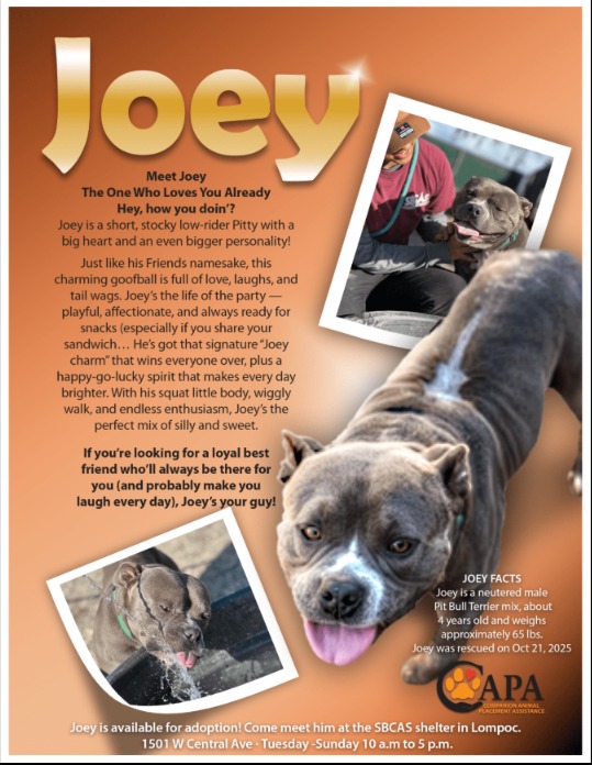 If you want to learn more about Joey or see other adoptable animals, you can call (833) 422‑8413 or check the county’s online pet search tool.
