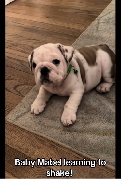 In a video recently shared online, this little English Bulldog pup decided it was time to learn a classic — the paw shake.