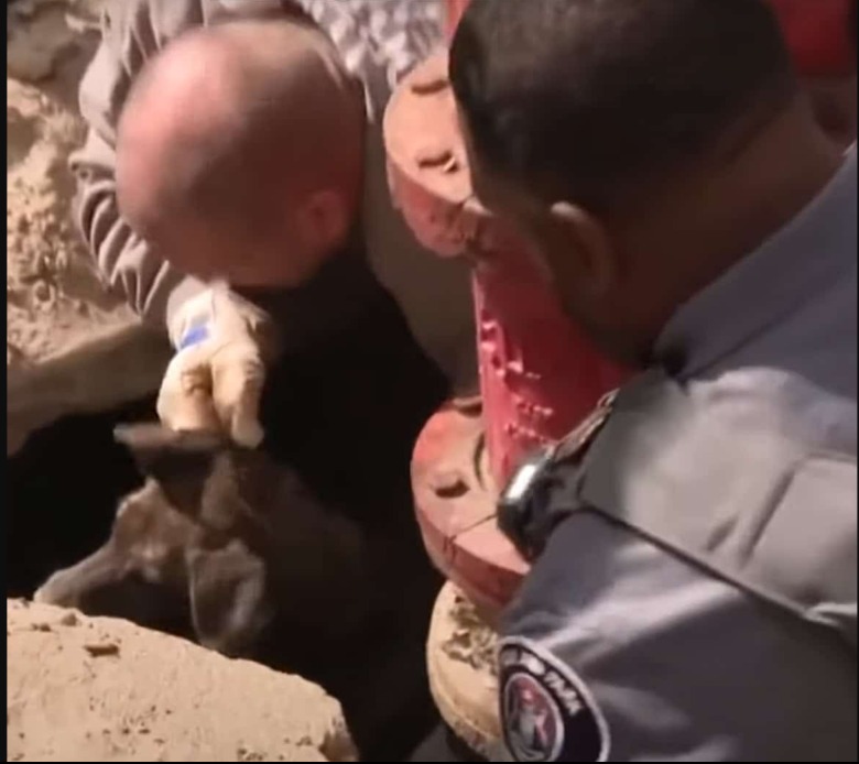 Distress that couldn’t wait. The sound led workers to a collapsed sidewalk, where, to their horror, they discovered a senior dog trapped in a sinkhole.