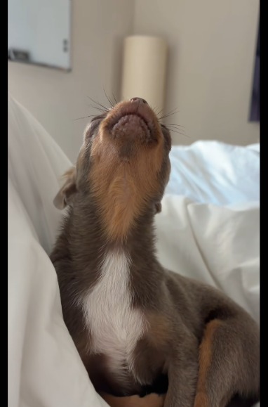 As sleep begins to creep in, the room falls quiet… and then comes a soft, plaintive howl. Not a full‑blown bark. Not a lobby from a big dog.