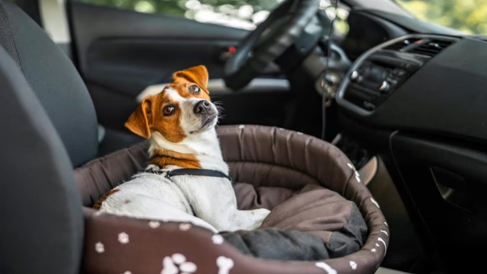 Stop every 1–2 hours for water breaks, bathroom time, and a short walk. This helps regulate your dog’s comfort and keeps them relaxed.