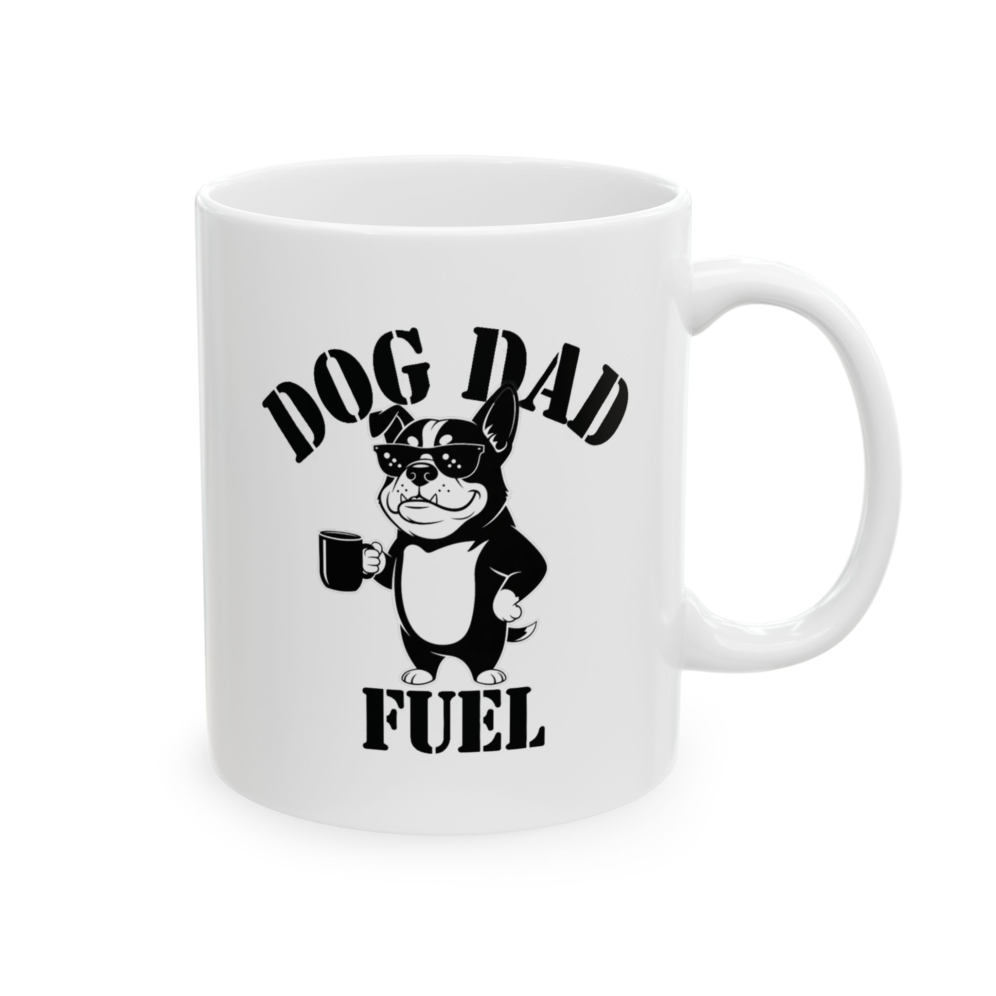 Show off your love for dogs with our "Dog Dad Fuel" Mug. Whether you're starting your day or winding down, this 11-ounce ceramic mug is your perfect companion for coffee, tea, or hot chocolate.