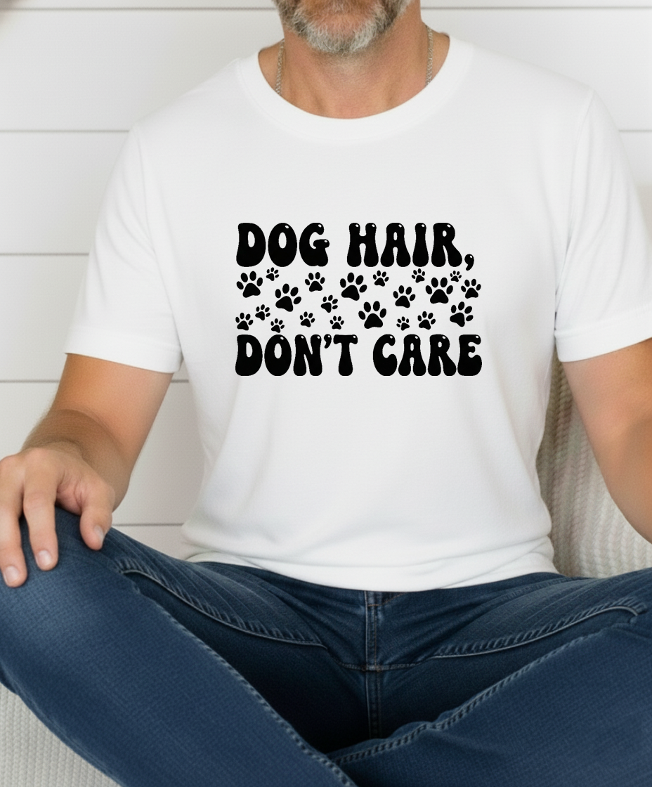 Show off your love for dogs with our “Dog Hair, Don’t Care” tee. Made from premium, soft cotton that feels as good as puppy snuggles. Perfect for walks, lounging, or any casual day where you want to wear your heart (and humor) on your sleeve.