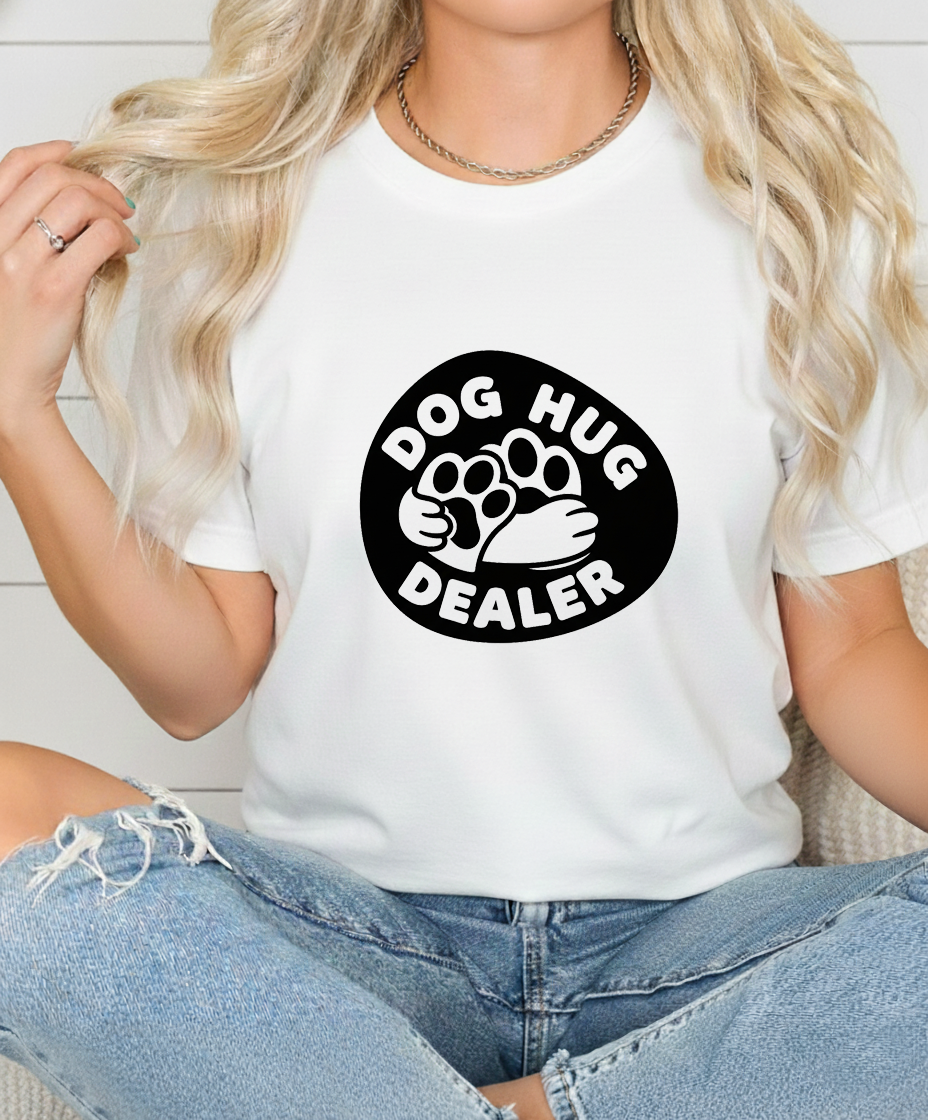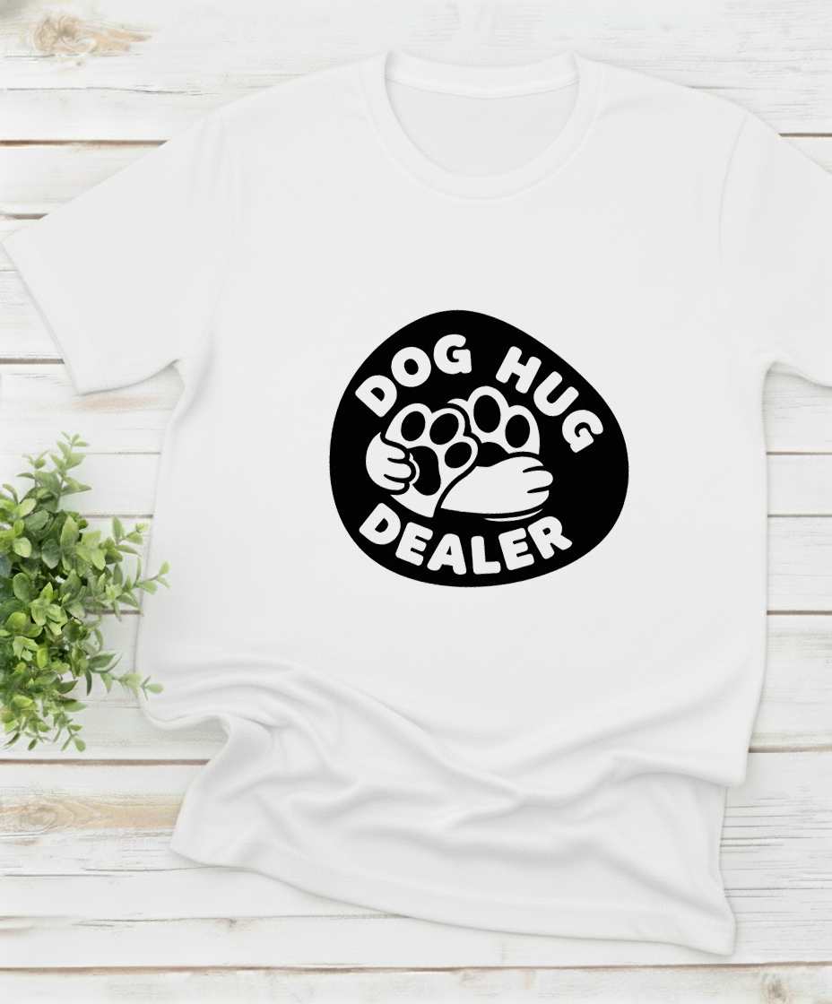 Show off your love for dogs with our “Dog Hug Dealer” tee. Made from premium, soft cotton that feels as good as puppy snuggles. Perfect for walks, lounging, or any casual day where you want to wear your heart (and humor) on your sleeve.