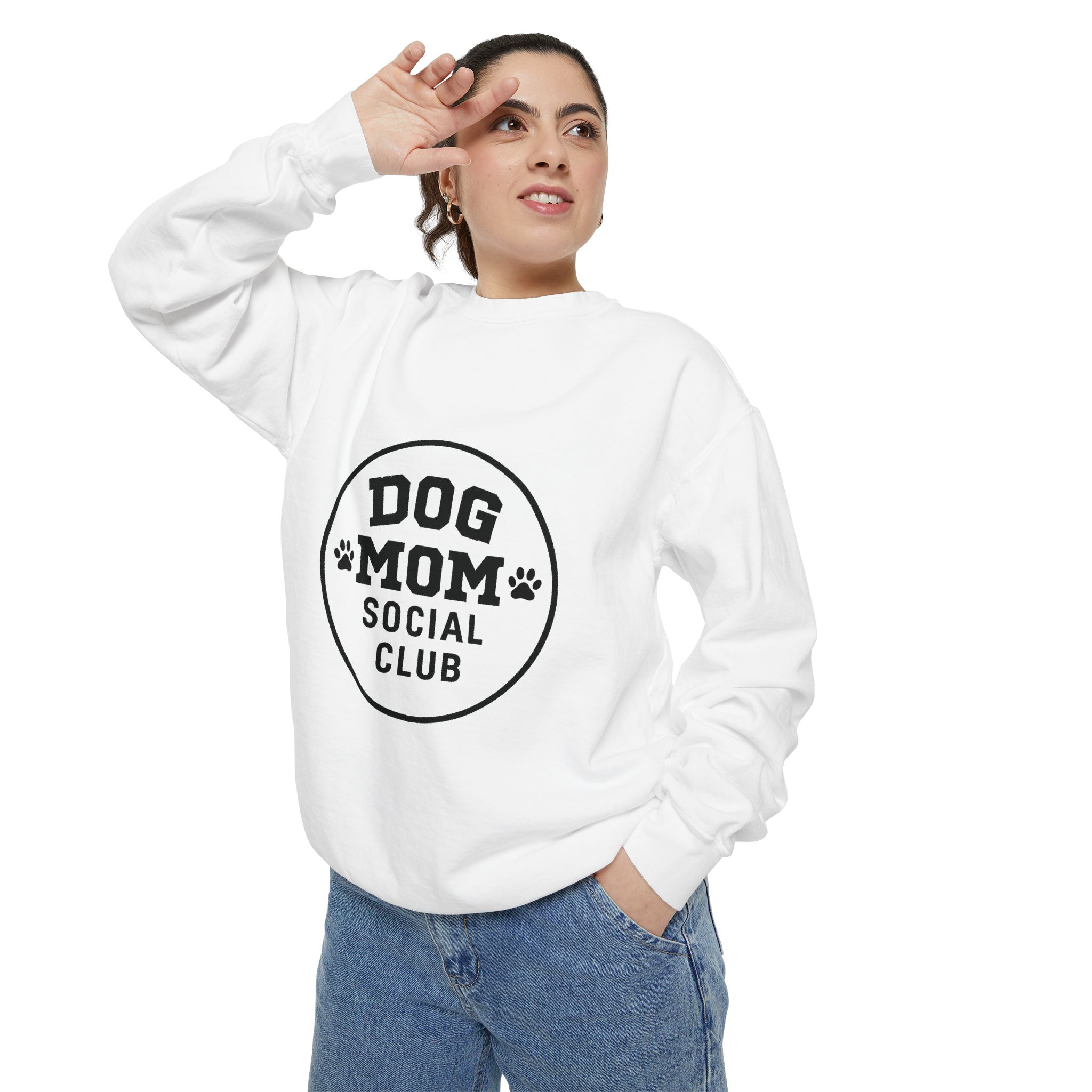 Show off your love for dogs with our "Dog Mom Social Club" sweatshirt. Luxurious comfort and style are what this unisex, garment-dyed sweatshirt is all about. It's made with 80% ring-spun cotton and 20% polyester and the fabric is 3-end garment-dyed, ring-spun, color-blast fleece with a 100% cotton face. Each sweatshirt comes with a relaxed fit, a rolled-forward shoulder, and a back neck patch.