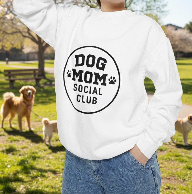 Show off your love for dogs with our “Dog Mom Social Club” sweatshirt. Luxurious comfort and style are what this unisex, garment-dyed sweatshirt is all about. It’s made with 80% ring-spun cotton and 20% polyester and the fabric is 3-end garment-dyed, ring-spun, color-blast fleece with a 100% cotton face. Each sweatshirt comes with a relaxed fit, a rolled-forward shoulder, and a back neck patch.
