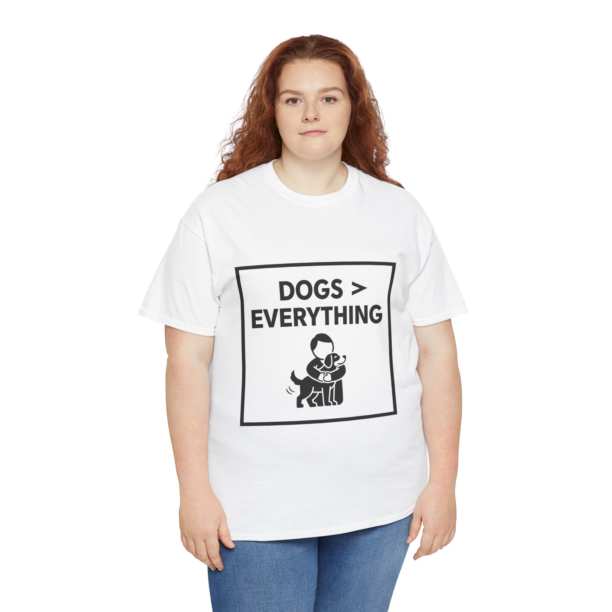 Show off your love for dogs with our "Dogs > Everything" tee. Made from premium, soft cotton that feels as good as puppy snuggles. Perfect for walks, lounging, or any casual day where you want to wear your heart (and humor) on your sleeve.