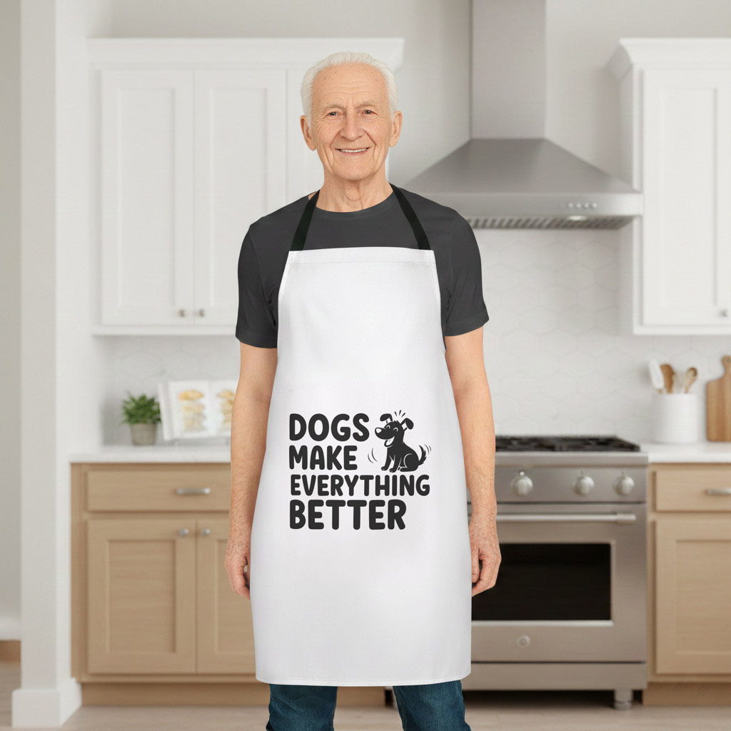 Show off your love for dogs with our “Dogs Make Everything Butter” apron. Let the home cook shine in the kitchen with a touch of character, the dog personalized chef’s apron. This apron comes with a tie-back closure to fit securely, a sewn-in care label for guesswork-free maintenance, and a highly durable 100% polyester canvas construction for top-tier durability. It comes in one size: 31.5″ x 25.6″.