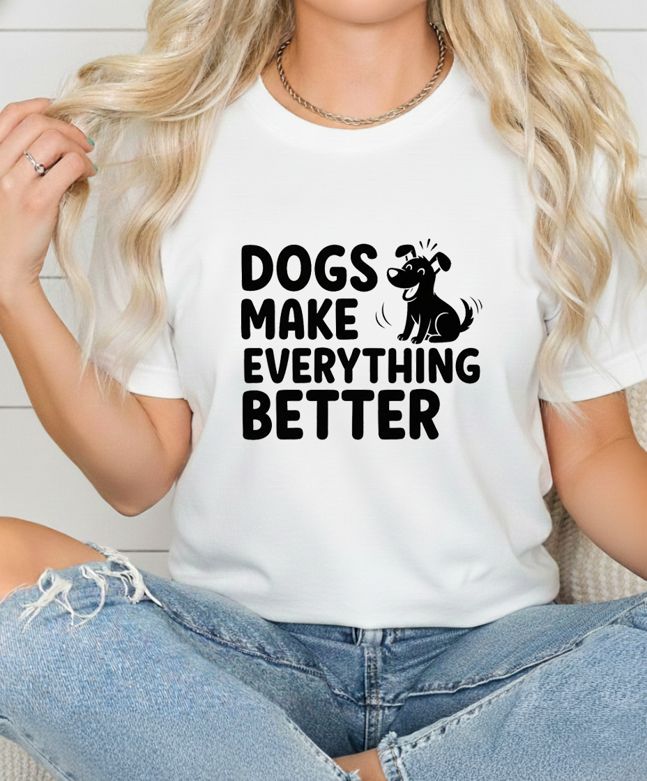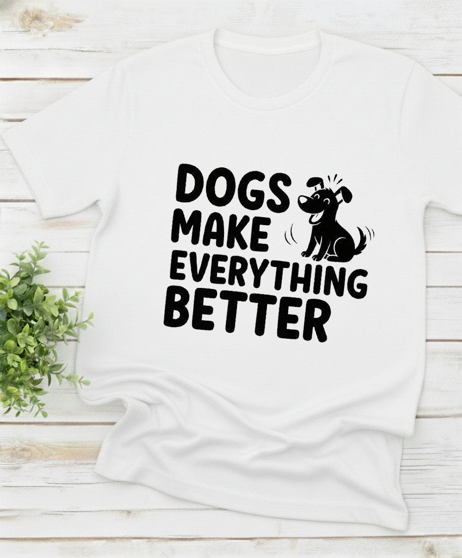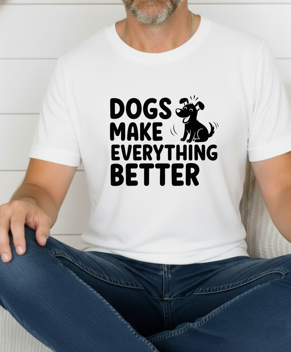 Show off your love for dogs with our “Dogs Make Everything Butter” tee. Made from premium, soft cotton that feels as good as puppy snuggles. Perfect for walks, lounging, or any casual day where you want to wear your heart (and humor) on your sleeve.