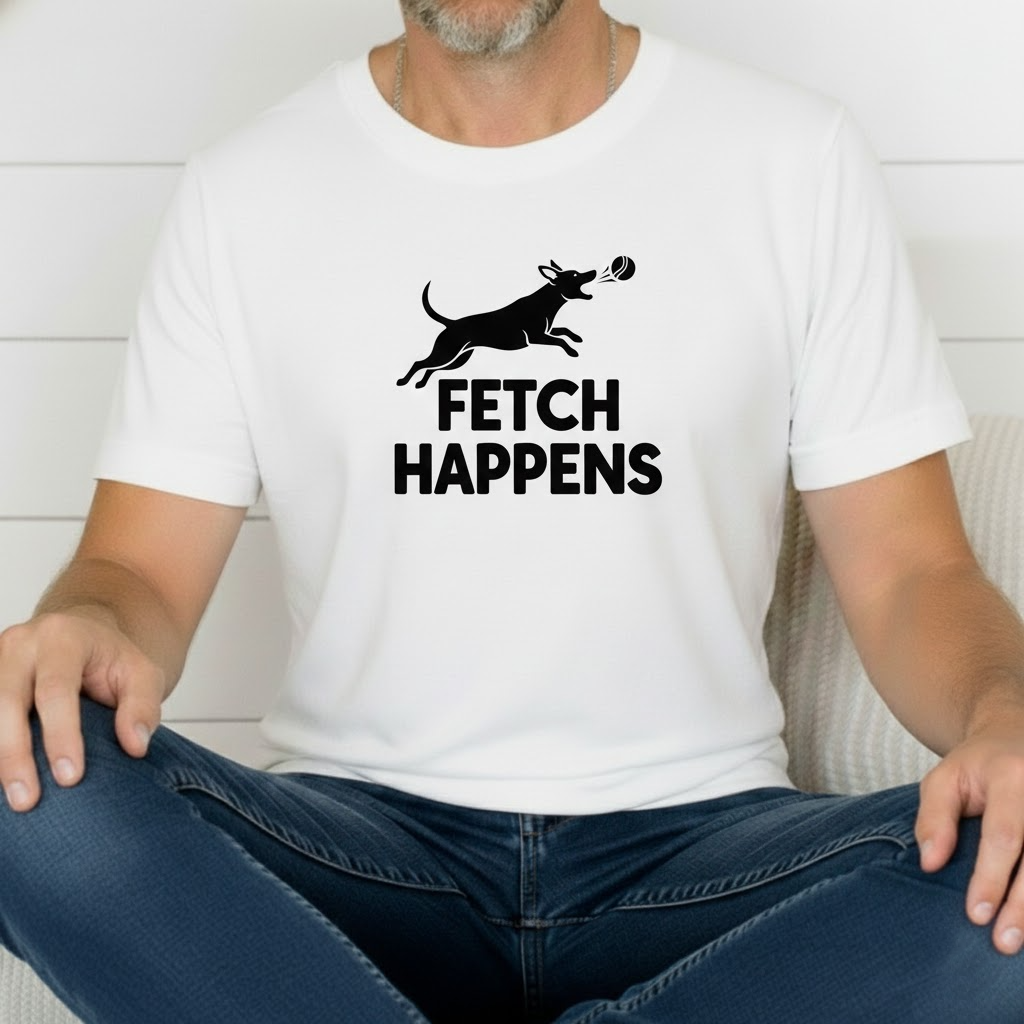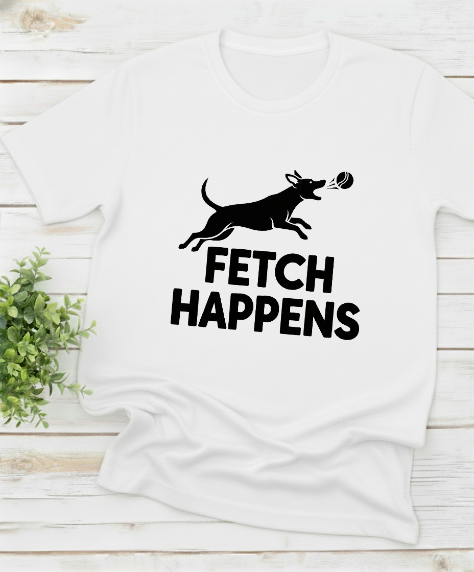 Show off your love for dogs with our “Fetch Happens” tee. Made from premium, soft cotton that feels as good as puppy snuggles. Perfect for walks, lounging, or any casual day where you want to wear your heart (and humor) on your sleeve.