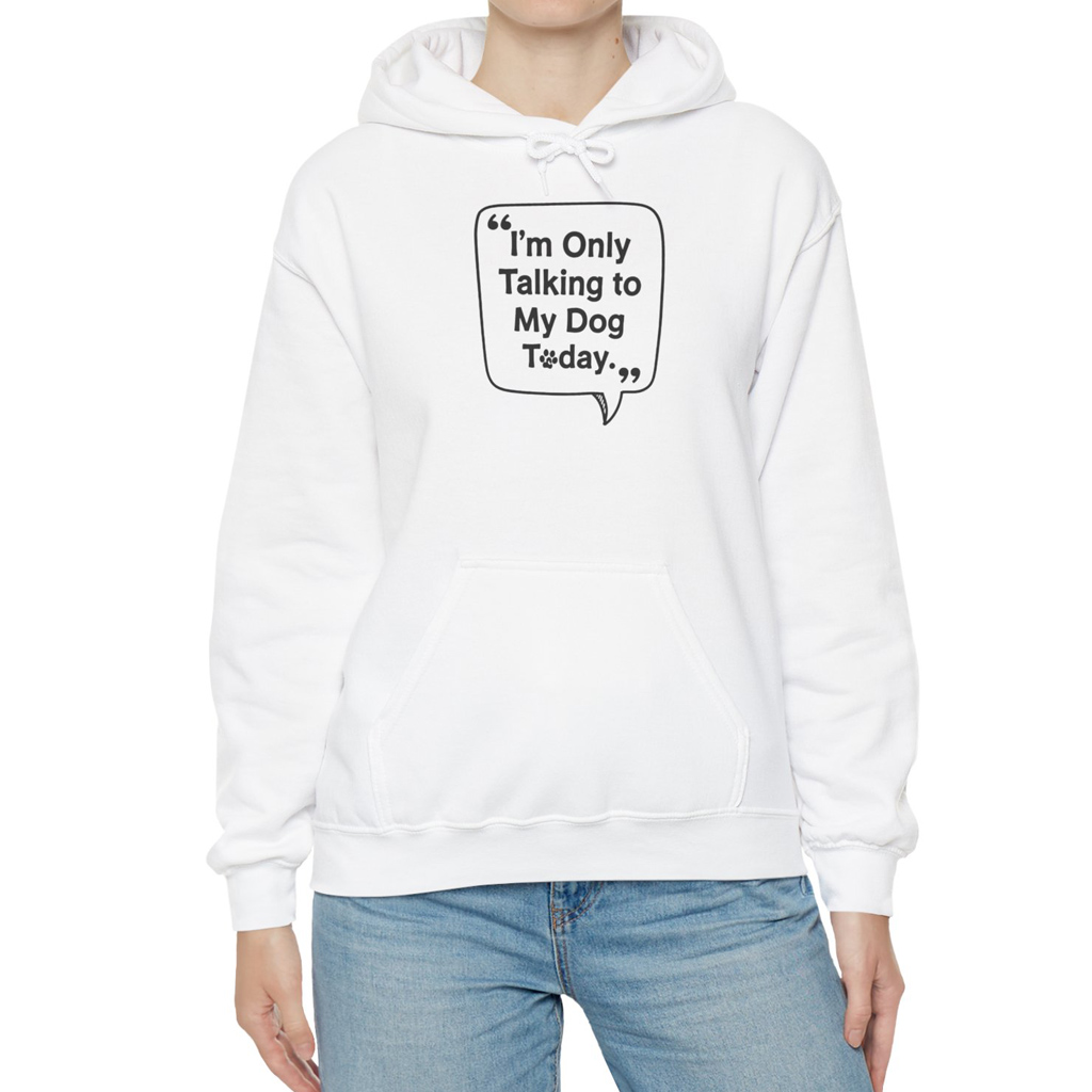 Show off your love for dogs with our “I’m Only Talking to My Dog Today” hoodie. Beat the cold with this premium pullover hoodie that’s just the right layer of warm and cozy. Made with three-panel fleece lining, this pullover is double stitched for durability and roomy. Pick one in your favorite color to match your style.
