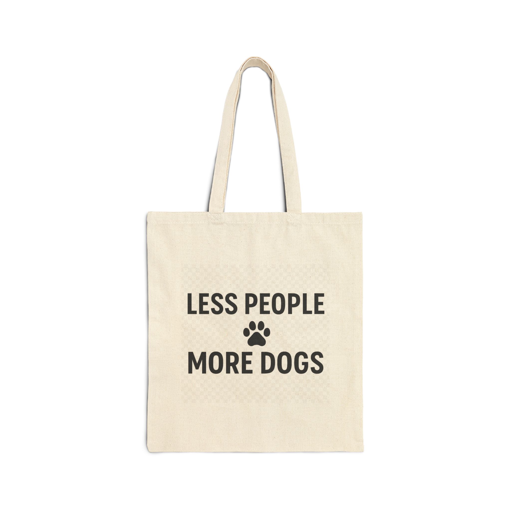 Show off your love for dogs with our "Less People, More Dogs" tote. This 100% cotton bag comes in one size – 15" x 16"– perfect for everyday wear. It's material is durable and will last for years. The bag features 20" handles (made from the same canvas), making it easy to carry even with a week's worth of shopping.