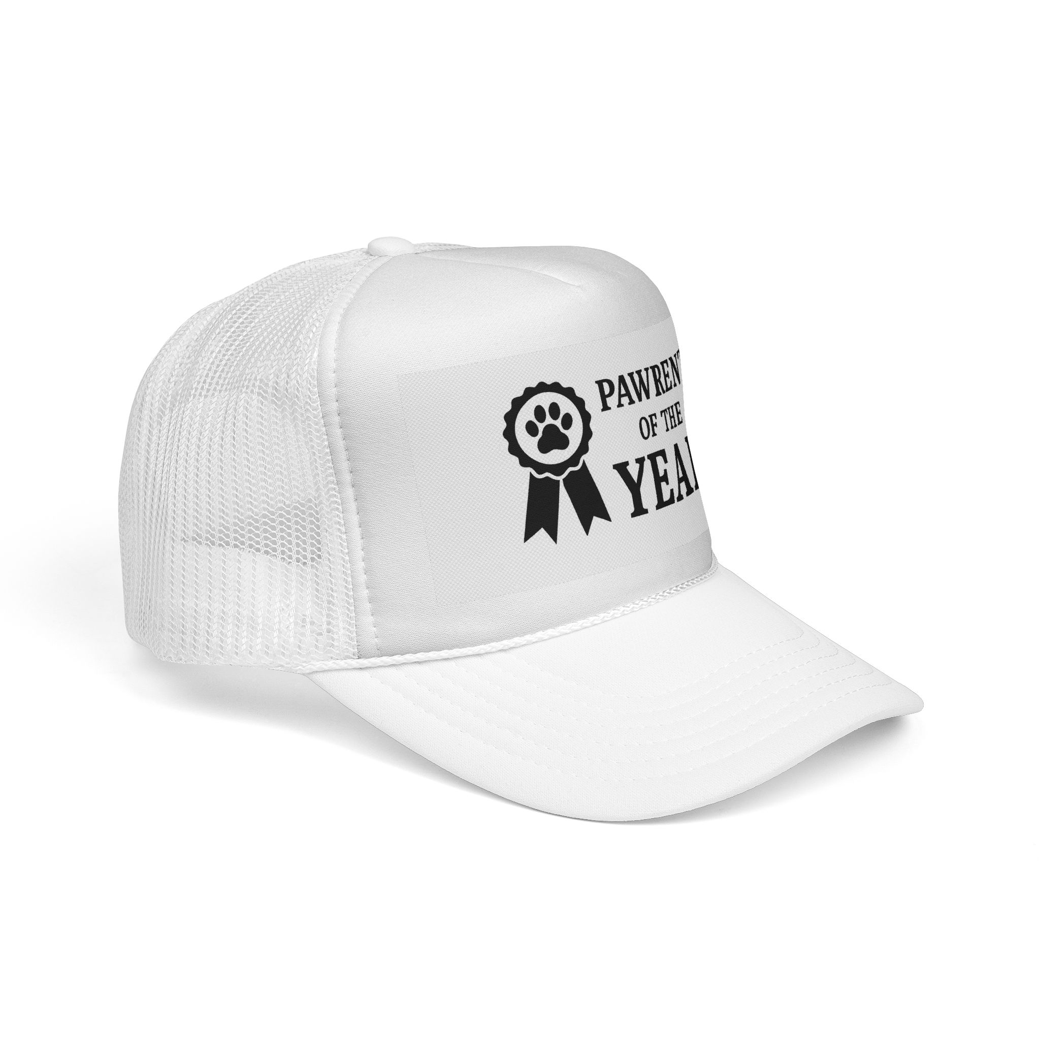 Show off your love for dogs with our "Pawrent of the Year" tracker caps. Trucker caps are perfect for merchandising—they're versatile and fit almost any occasion. A 100% polyester front and 100% nylon mesh weave back make these hats super durable through regular wear and tear. They come in one size with an adjustable plastic snap closure: 22.8" (58cm). The cap's front has six rows of visor stitching.