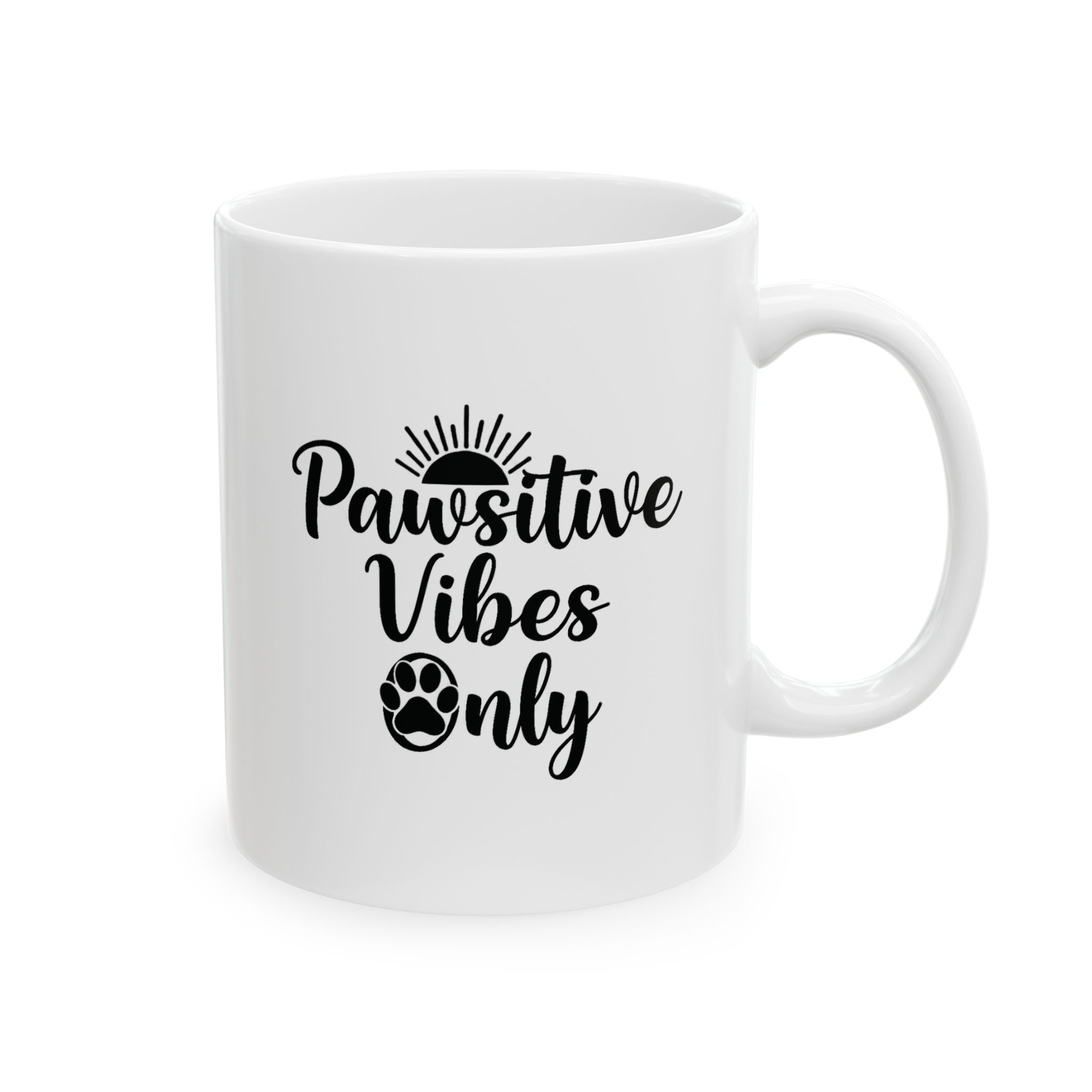 Show off your love for dogs with our "Pawsitive Vibes Only" Mug. Whether you're starting your day or winding down, this 11-ounce ceramic mug is your perfect companion for coffee, tea, or hot chocolate.