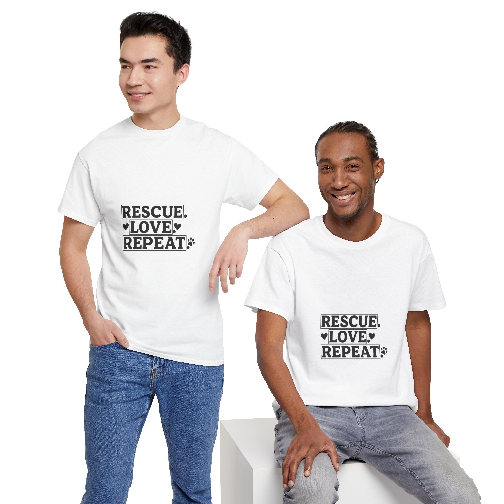 Show off your love for dogs with our "Rescue. Love. Repeat." tee. Made from premium, soft cotton that feels as good as puppy snuggles. Perfect for walks, lounging, or any casual day where you want to wear your heart (and humor) on your sleeve.