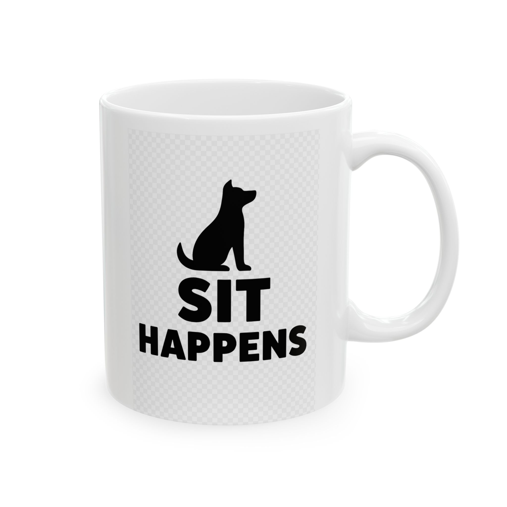 Show off your love for dogs with our "Sit Happens" Mug. Whether you're starting your day or winding down, this 11-ounce ceramic mug is your perfect companion for coffee, tea, or hot chocolate.