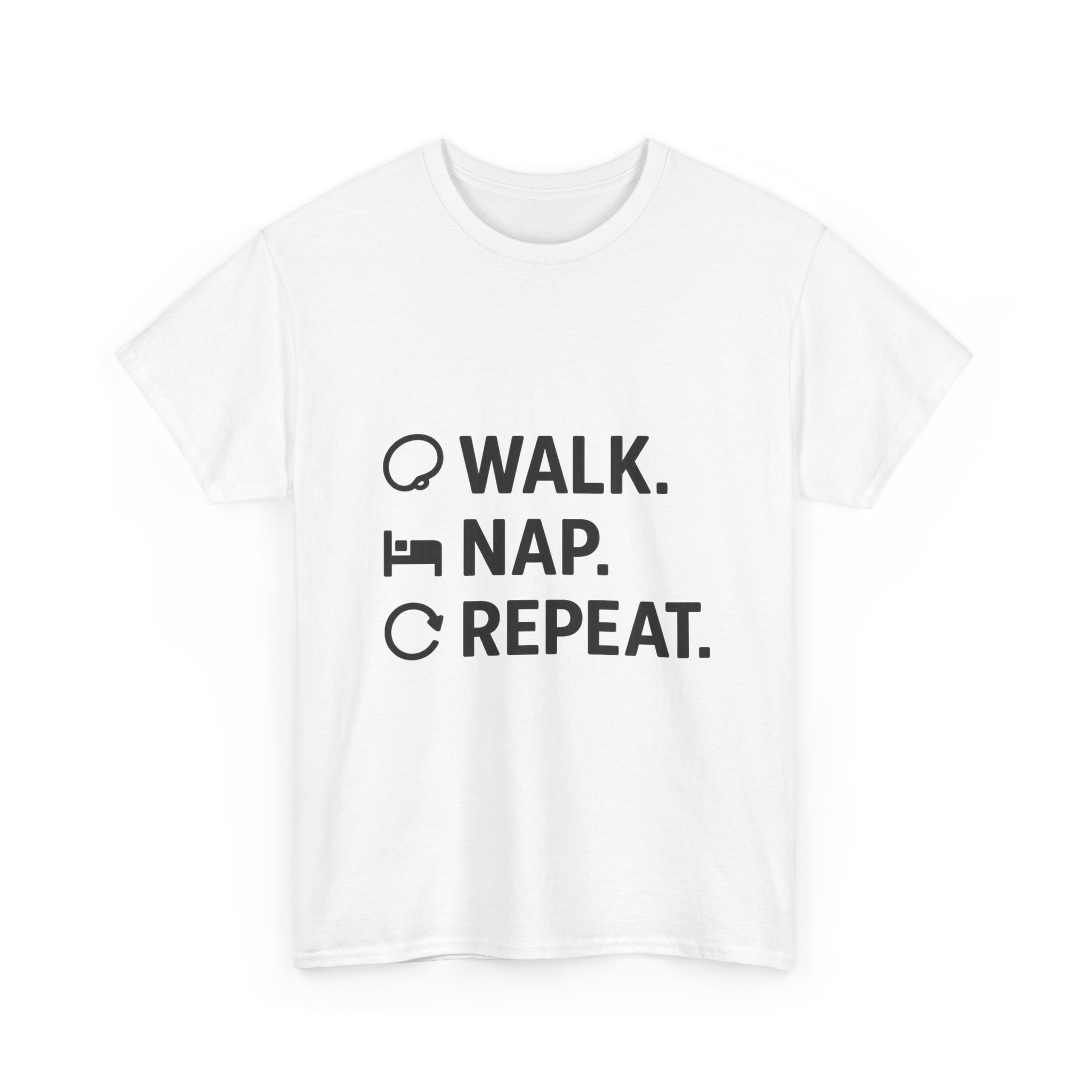 Show off your love for dogs with our "Walk. Nap. Repeat." tee. Made from premium, soft cotton that feels as good as puppy snuggles. Perfect for walks, lounging, or any casual day where you want to wear your heart (and humor) on your sleeve.