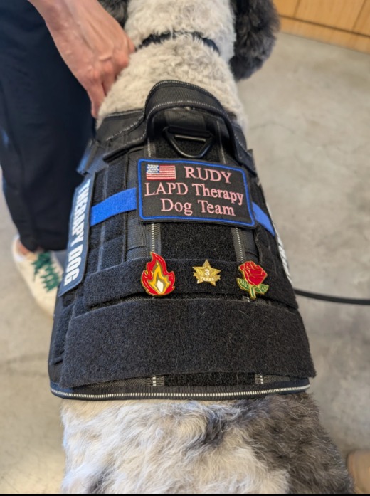 Fast forward to today. Rudy is a certified therapy dog working with the Los Angeles Police Department.