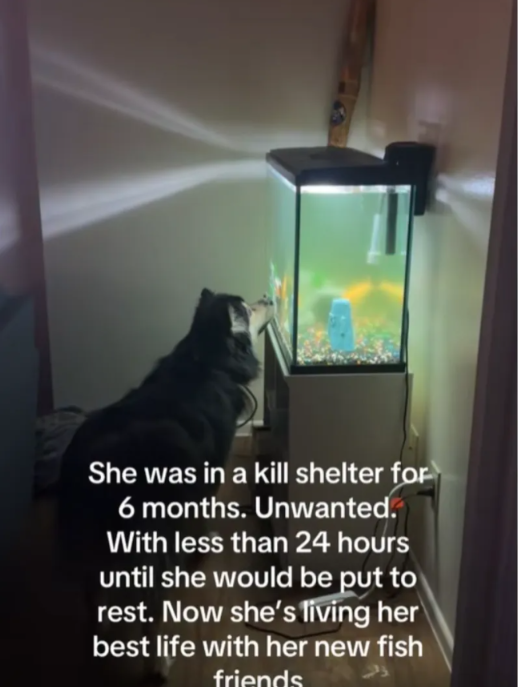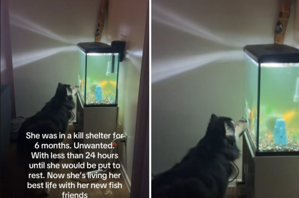 According to the viral video Gack shared, Bean quickly found a source of comfort that perfectly matches her calm nature: a fish tank. The video shows the once‑doomed dog sitting quietly, fascinated by her “fish friends,” as Gack sweetly calls them.
