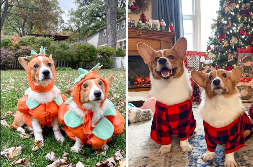Madison posts their journey on TikTok (@maddieandnugget). One video shows both dogs in outfits for holidays.